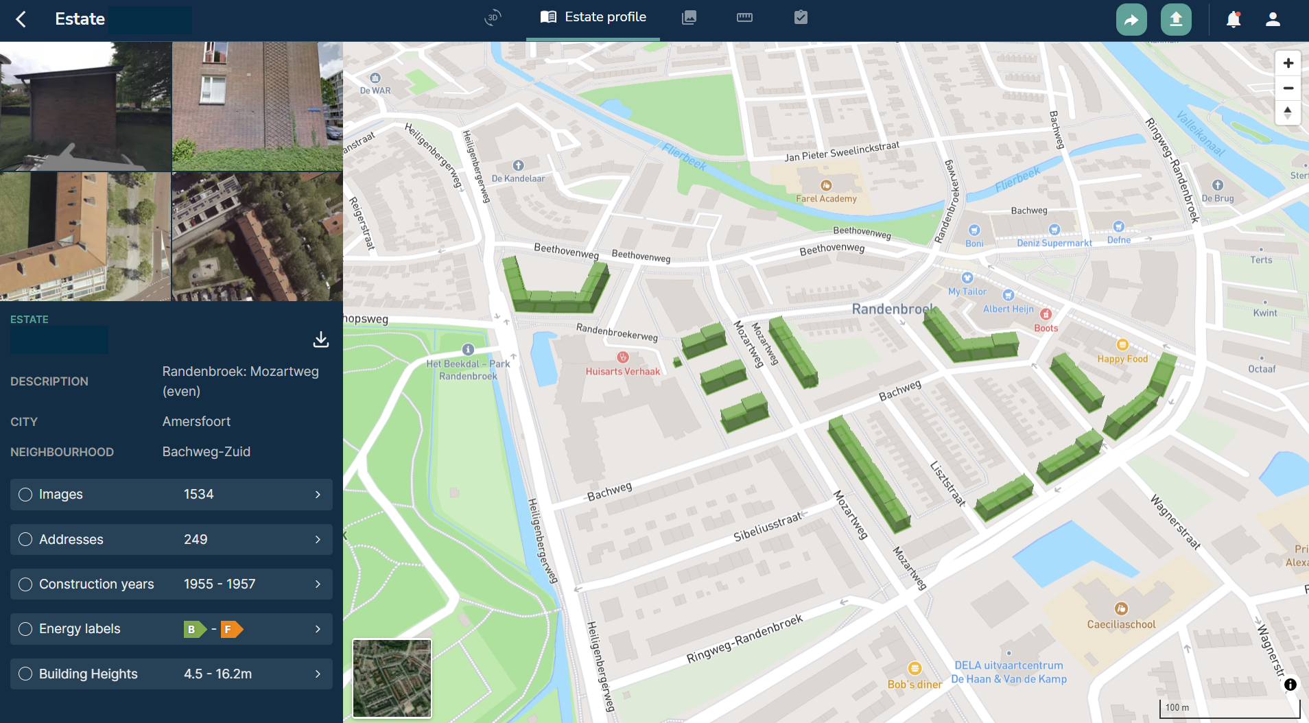 Spotr uses AI to inspect properties on elements, condition, typology, materialization and measurements, after which we use scoring models to turn the data into insights.